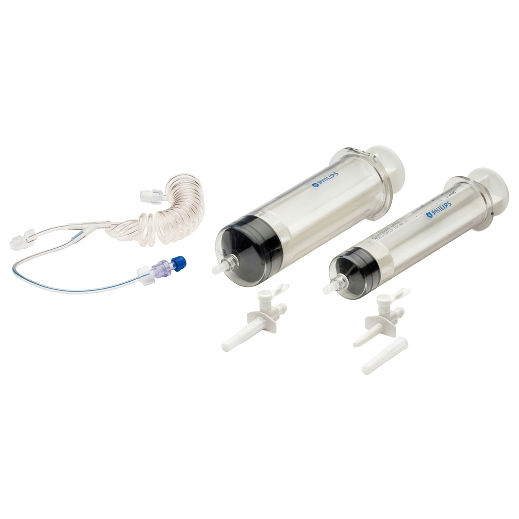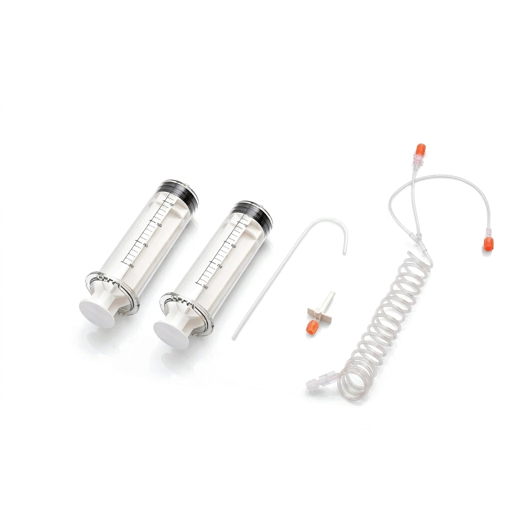 Specialized syringe sets designed for Guerbet contrast injector systems, ensuring smooth flow and consistent pressure delivery.